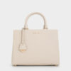For a sophisticated spin on a classic work carryall, look to this Harper top handle bag for new style inspiration. Featuring a trapeze silhouette for a structured and sleek look, this bag has a zip closure that opens up into a roomy interior – perfect for holding everything you need. Bonus points for the gold-toned embellished keychain and hardware that create visual contrast against the all-black finish.