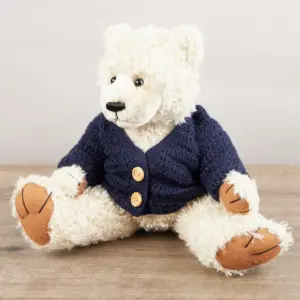 CoopersTown DWRCLAYTON Clayton Jointed 30cm Cream Bear with Navy Cardigan