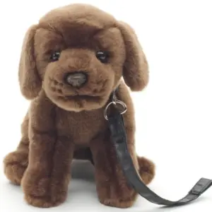 Uni Toys L82114R3 Brown Labrador with Leash 23cm Sitting Puppy Dog Plush Toy