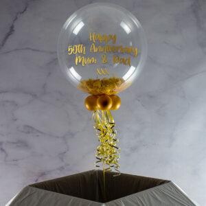 Personalised 50th / Gold Wedding Anniversary Bubble Balloon – Gold Sparkle Confetti