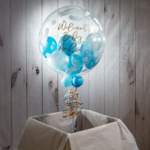 Personalised Light Blue Balloon-Filled Baby Feet Print Bubble Balloon