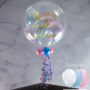 Personalised Baby Pink, Baby Blue & Clear Stars Balloon-Filled Bubble Balloon
