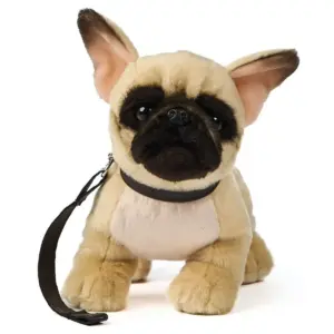 Uni Toys R20544R French Bulldog Beige and Black Dog Standing WITH LEASH 26cm Soft Toy