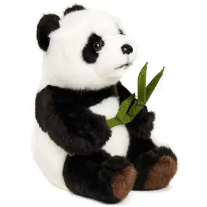 Uni Toys B10832 Panda Bear with Leaf Black and White 17cm Sitting Plush Toy