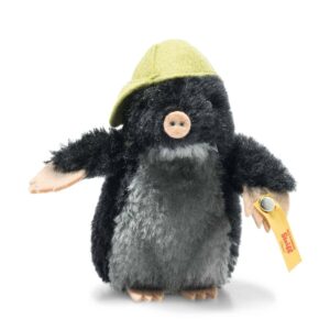 Steiff 056789 Maxi Mole Black and Grey Two Tone Mohair with Lime Hat