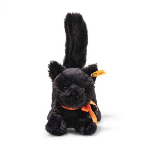 Steiff 099298 Spooky Black Cat Plush Soft Toy Wearing Orange Ribbon