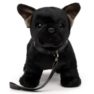 Uni Toys HFB2325R Black French Bulldog with Leash 23cm Standing Plush Toy