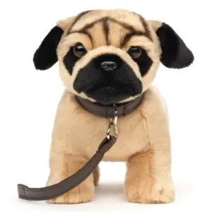 Uni Toys HM2325R Beige Pug Dog with Leash 23cm Standing Soft Plush Toy