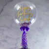 A decoration fit for any centenarian! This feather balloon is available in a range of vibrant colours, you can also personalise with your own message or receive with the (Happy 100th Birthday xxx) text. We inflate a 20″ spherical clear plastic balloon and then insert soft feathers. To finish we add 4 small balloons to the base of the balloon and add colour co-ordinated ribbons and weight. Each balloon lasts between 7 – 10 days, long lasting in comparison to standard foil balloons.