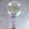 Make your 13th birthday a spectacular one with a gorgeous personalised balloon filled with fluffy feathers! Choose from 4 colours and personalise with your own message or receive your balloon with the standard (Happy 13th Birthday xxx) text. We inflate a 20″ spherical clear plastic balloon and then insert soft feathers. To finish we add 4 small balloons to the base of the balloon and add colour co-ordinated ribbons and weight. Each balloon lasts between 7 – 10 days, long lasting in comparison to standard foil balloons.