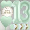 Make it a birthday to remember with our mint green foil numbers balloon package, a great gift and decoration for a 16th birthday celebration. Arriving inflated in the post, our 16th birthday balloon package includes two 26″ mint green foil balloon numbers filled with helium, plus our special foil balloon bunch including a ‘Happy Birthday’ design. We add in 10 free scatter balloons to match the colour scheme.