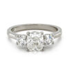 This lovely 18ct yellow gold engagement ring holds 3 oval cut diamonds with the 2 outer diamonds being slightly smaller than the central diamond. The central diamond has a carat weight of 0.43ct and is certified E/VS2 while the 2 outer stones have a combined carat weight of 0.65ct. Trilogy rings are said to symbolise the past present and future of the relationships which is why so many choose them as an engagement ring.