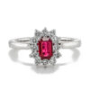 18ct White Gold Double Ruby and Diamond Pear Shaped Cluster Drop Necklace A delightful 18ct white gold ruby and diamond necklace on an 18ct 16 white gold foxtail chain. A pear shaped rich red ruby and diamond pendant points down to a larger ruby and diamond cluster. The total of the ruby stones is .70cts and the diamonds .11cts. A wonderful necklace for those celebrating a ruby wedding anniversary or for a ruby birthstone,05190251