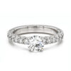 18ct White Gold Emerald Cut 1.01cts with Diamond Halo Surround and Diamond Shoulders A stunning 18ct white gold ring which features an exceptional certificated 1.01cts E colour emerald cut diamond to the centre which is held securely in place by white gold claws. The emerald cut diamond is surrounded by a halo of round brilliant cut diamonds. The rings is exquisitely finished with diamond set shoulders. The halo and shoulders have a total carat weight of .45cts