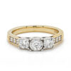 This 18ct white gold ring features a cluster of diamonds in a pear shape, the cluster consists of 1 pear diamond which is 0.10ct, 2 oval diamonds which combined are 0.15ct and 2 marquise diamond which combined are 0.13ct. Surrounding the cluster is a halo of 23 brilliant cut diamonds that have a total carat weight of 0.14ct.