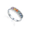 18ct White Gold Pear Shaped Sapphire and Diamond Pendant A beautiful all 18ct white gold pendant with a pear shaped pendant. A pear shaped blue sapphire sits centre stage and has a white gold rim around the centre stone. A halo of round diamonds which are micro claw set sit around the edge of the pendant. A white gold bale allows an 18ct white gold 16 chain to run through the pendant. The sapphire has a total carat weight of .22cts and the diamonds .11cts