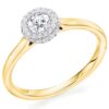 A classic style engagement ring in all gold. The 18ct yellow gold band is set with round brilliant cut diamonds in the shoulders in a claw setting, which total .26cts. The centre diamond of the ring is a round brilliant cut diamond in a four claw white gold setting, which is .40cts certificated D/Si clarity