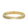 A sweet 18ct yellow gold ring which is perfectly shaped to suit a shaped or large cluster engagement ring. Each petal of the ring features a single diamond in a micro claw setting. The diamonds total .08cts