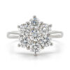 This gorgeous yellow gold engagaemnt ring features a cushion cut central stone surrounded by a halo of smaller round brilliant diamonds. The cushion cut stone has a carat weight of 0.45ct and is certified J/VS2. the halo of diamonds have a total carat weight of 0.09ct.