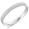 A classic eternity diamond set band in all platinum . The 4.10mm wide band features round brilliant cut diamonds in a channel setting. The diamonds have a total carat weight of 1.00cts and are of G/H si clarity