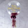 Decorate your 21st birthday with a bubble balloon filled with a selection of fluffy feathers! This stunning twist on traditional balloons can also be personalised with your very own message, or you can receive it with (Happy 21st Birthday xxx) text. We inflate a 20″ spherical clear plastic balloon and then insert soft feathers. To finish we add 4 small balloons to the base of the balloon and add colour co-ordinated ribbons and weight. Each balloon lasts between 7 – 10 days, long lasting in comparison to standard foil balloons.