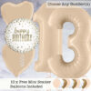 Celebrate a 25th birthday in style with our satin cream foil numbers balloon package, arriving inflated in the post – a great gift and decoration for the big event. The 25th balloon package includes two 26″ cream foil balloon numbers filled with helium, plus our special foil balloon bunch including a ‘Happy Birthday’ design. We add in 10 free scatter balloons to match the colour scheme.