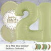 Celebrate a 30th birthday in style with our sage green foil numbers balloon package, arriving inflated in the post – a great gift and decoration for the big event. The 30th balloon package includes two 26″ green foil balloon numbers filled with helium, plus our special foil balloon bunch including a ‘Happy Birthday’ design. We add in 10 free scatter balloons to match the colour scheme.