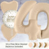 Celebrate a 30th birthday in style with our satin cream foil numbers balloon package, arriving inflated in the post – a great gift and decoration for the big event. The 30th balloon package includes two 26″ cream foil balloon numbers filled with helium, plus our special foil balloon bunch including a ‘Happy Birthday’ design. We add in 10 free scatter balloons to match the colour scheme.