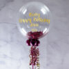 Make that 40th birthday bash one you’ll never forget with a creative multi-fill bubble balloon, available in 14 separate colours. Either personalise with your very own message or choose the (Happy 40th Birthday xxx) text option. We inflate a 20″ spherical clear plastic balloon and then insert 9 balloons in your choice of colours inside. To finish we add 4 small balloons to the base of the balloon and add colour co-ordinated ribbons and weight.