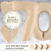 Celebrate an 80th birthday in style with our satin cream foil numbers balloon package, arriving inflated in the post – a great gift and decoration for the big event. The 80th balloon package includes two 26″ cream foil balloon numbers filled with helium, plus our special foil balloon bunch including a ‘Happy Birthday’ design. We add in 10 free scatter balloons to match the colour scheme.