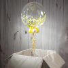 Nothing will kick off that party quite like a bit of confetti! Choose from a wide range of different colours to best suit that 90th birthday celebration. Personalise with your own message or receive with (Happy 90th Birthday xxx) text. We inflate a 20″ spherical clear plastic balloon and then insert confetti; to finish we add 4 small balloons to the base of the balloon and add colour co-ordinated ribbons and weight.