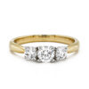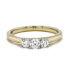 This trilogy engagement ring is crafted out of 9ct yellow gold and features three round brilliant cut diamonds. The center stone has a carat weight of 0.22 ct and the 2 side stones have a combined carat weight of 0.28ct.
