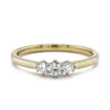 This stunning 9ct yellow gold engagement ring features 3 round brilliant diamonds in a trilogy setting. It also features some 10 smaller brilliant cut diamonds on the under bezel on both sides. The under bezel diamonds have a total carat weight of 0.06ct. The central diamond has a carat weight of 0.22ct and the 2 smaller side diamonds have a total weight of 0.22ct.