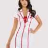 Unleash your naughty side this Halloween with the After Dark seductive Naughty Maid Halloween costume. Featuring a black PVC dress with puff sleeves trimmed with white satin frill edging, the look is completed with the white frilly satin and lace maid headband and tie around apron. Not to forget the black heart tickler that can be used for caresses or sensual strikes, trick or treat… you decide. Dare to embrace the dark side and make a powerful statement this Halloween.
