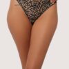 Strap into next level lingerie and the confident florals of the ‘Aisha Black Optical Embroidery Ring Bra’. Featuring full, underwire cups and longline bridge cut from barely there nude mesh overlaid with bold black geometric botanic embroidery, this is a seductive statement piece that will take you from the bedroom to the bar styled underneath a sharp blazer. Gold metal o-rings connect three adjustable thick satin elastic bands and shoulder straps, which lead to a caged back with hook and eye fastener. For the full luxury look, pair with the matching Aisha Thong.