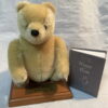 This lovely Artist Bear is made with a vintage pink hued velvet with cranberry coloured paw pads which matches her vertically thread stitched nose. She is wearing a white lace collar and is five way jointed.