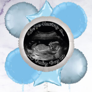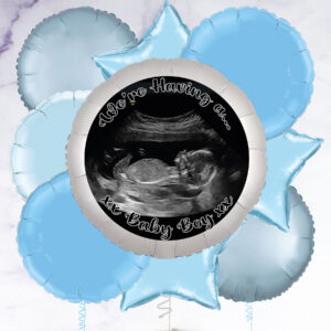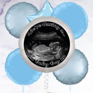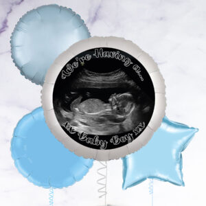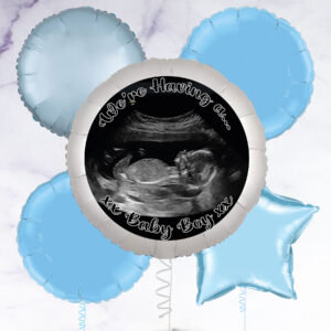 Our personalised photo balloon is a truly special way to reveal the gender of your baby, featuring a picture of your memorable scan. You have the option to add a selection of foil balloons to make a beautiful bunch. Arriving inflated, you can add a photo of your choice to the balloon, as well as a personalised message. Photo balloon is 23″ in diameter, Foil balloons are 18″ – 20″ in diameter, Balloons arrived inflated with a weight, Float time: Approx 10 – 14 days, Note: If you order 4 or more balloons, your order may arrive in multiple boxes, How It Works Upload your image. Choose an image that’s as big as possible – this will allow you to choose the right part of your image to feature on the balloon., Use your mouse (computer) or finger (mobile/tablet) to move the balloon over your image in the preview above. Use the arrows to zoom in and out until you’re happy with your selection., Add your text – we can add one line of text at the top and one line of text at the bottom, or you can choose to have no text at all., Use the ‘Click here to see a preview’ button to see what your finished balloon will look like., On the next stage you can choose to add between 1 – 11 foil balloons to create a bunch.,
