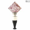 Bottle stopper handmade with the technique of fusing glass in Original Murano Glass, with addition of small glass pieces and blue millefiori.