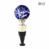 Bottle Stopper Pink handmade with fusing glass technique in Original Murano Glass, embellished with glass pieces and blue millefiori for exclusive tableware.