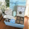 Bridesmaid hamper includes mini rose wine, face mask, chocolate biscuits, house socks, bath soak, and fig and wild pear candle to show appreciation.