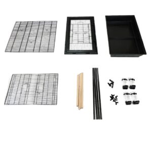 The Waldorf Cage is a spacious and stylish habitat designed for budgies, canaries, finches, and small to medium-sized birds up to a cockatiel. Featuring a large opening top door for easy access, this cage includes all perches and feeders shown, providing a complete and comfortable setup. With a 15mm bar spacing, it ensures safety and proper ventilation, while the collapsible design makes it easy to store and space-saving. The sleek black finish adds a modern touch to any home, making it both practical and visually appealing.