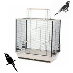 The Waldorf Cage is a spacious and stylish habitat designed for budgies, canaries, finches, and small to medium-sized birds up to a cockatiel. Featuring a large opening top door for easy access, this cage includes all perches and feeders shown, providing a complete and comfortable setup. With a 15mm bar spacing, it ensures safety and proper ventilation, while the collapsible design makes it easy to store and space-saving. The sleek black finish adds a modern touch to any home, making it both practical and visually appealing.