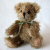 Furze is fully jointed, using Canterbury Bears, own hand stamped wooden joints and has been lovingly crafted from luxurious, sparse 'pale coffee' hued mohair, with soft and tactile ultra-suede soles and palms on his paws, whilst being softly filled, with pure white polyester fibre. He has expressive, shiny black safety eyes with a hand embroidered, black woollen nose and mouth, wearing a hand crocheted meadow hued waistcoat, featuring a trio of black buttons and a crocheted, parchment coloured necktie, plus a woven Canterbury Bears, makers label.