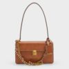 This Acelynn tote bag in black features a rope-chain strap, a distinctive metallic buckle, double handles, and a front-flap design with a push-lock closure. Carry it to elevate your work ensembles effortlessly.