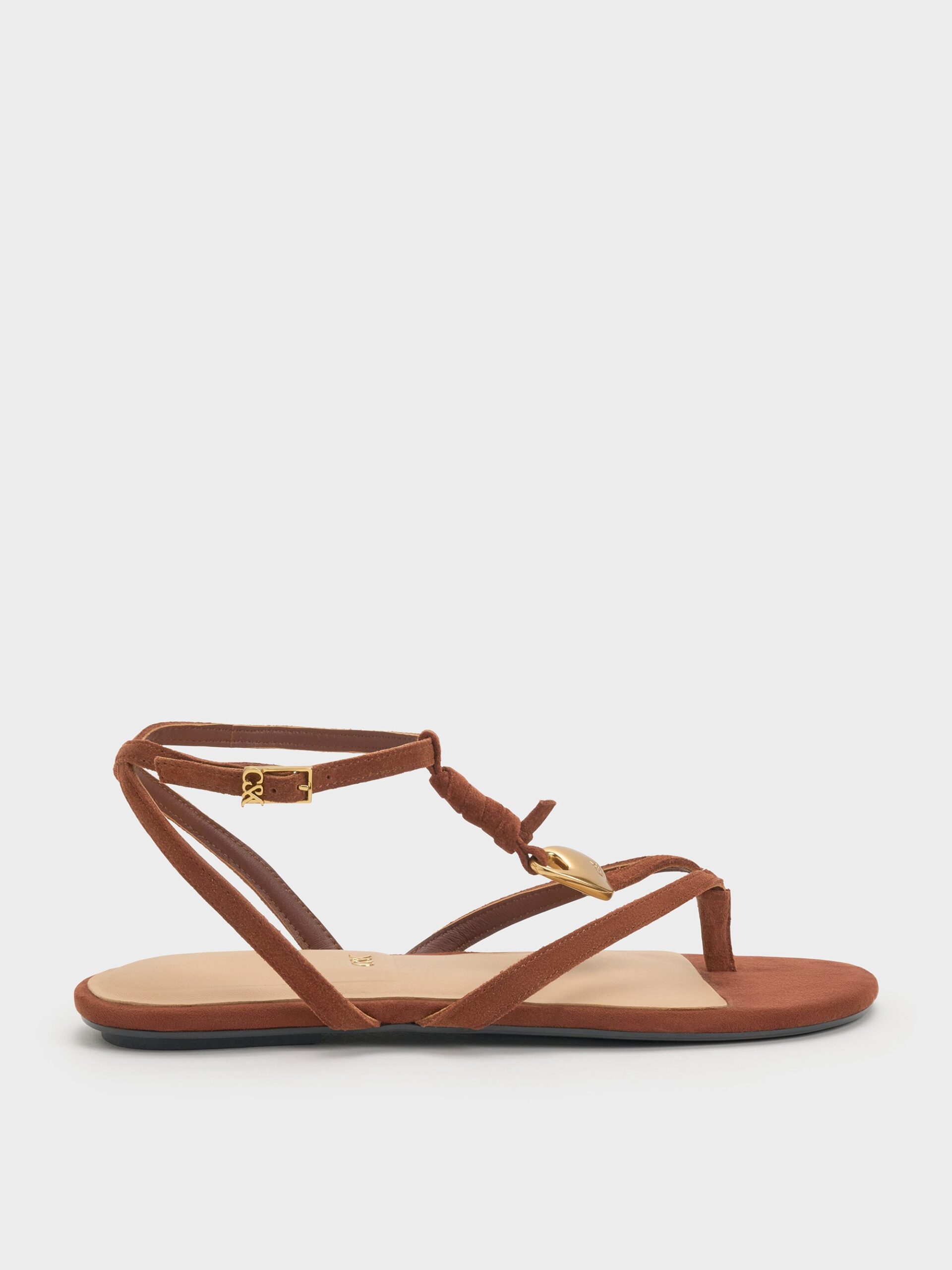These Adema thong sandals in brown are made with leather and feature slim strappy uppers, gold sculpted oval accents, knotted-strap details, adjustable ankle straps and open toes. Pair them with relaxed tailoring to create effortlessly chic yet relaxed ensembles.