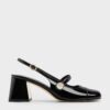 Exude glamour and elegance with every step when you step out in these slingback pumps. With a sleek and polished black patent finish, these shoes will complement any outfit of your choice, while making it stand out with a lustrous sheen. Bonus points for the 6cm trapeze heels featuring metallic plating that will elevate your look with eye-catching shine.