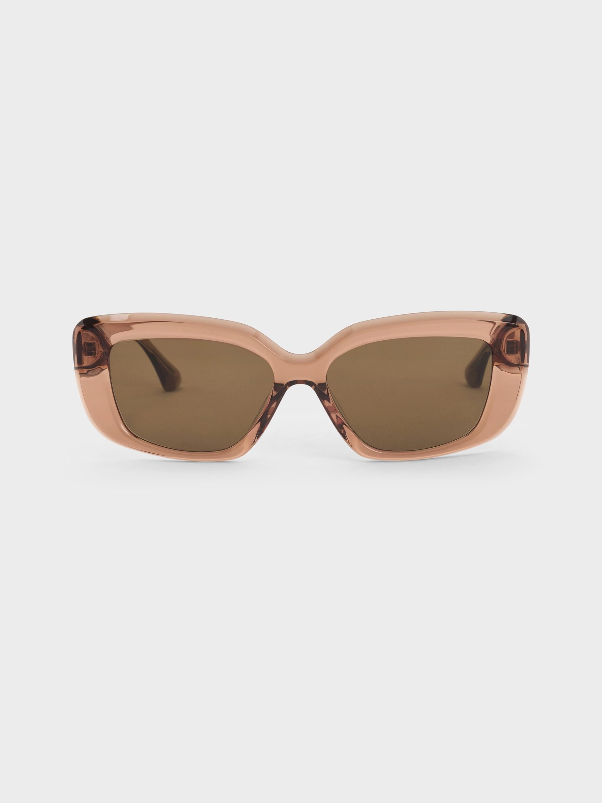 These Alix sunglasses in chestnut brown are made with recycled acetate and feature butterfly-shaped frames, metallic accents and tinted lenses. This pair will soften tailored looks with their warm colour and sculptural design.