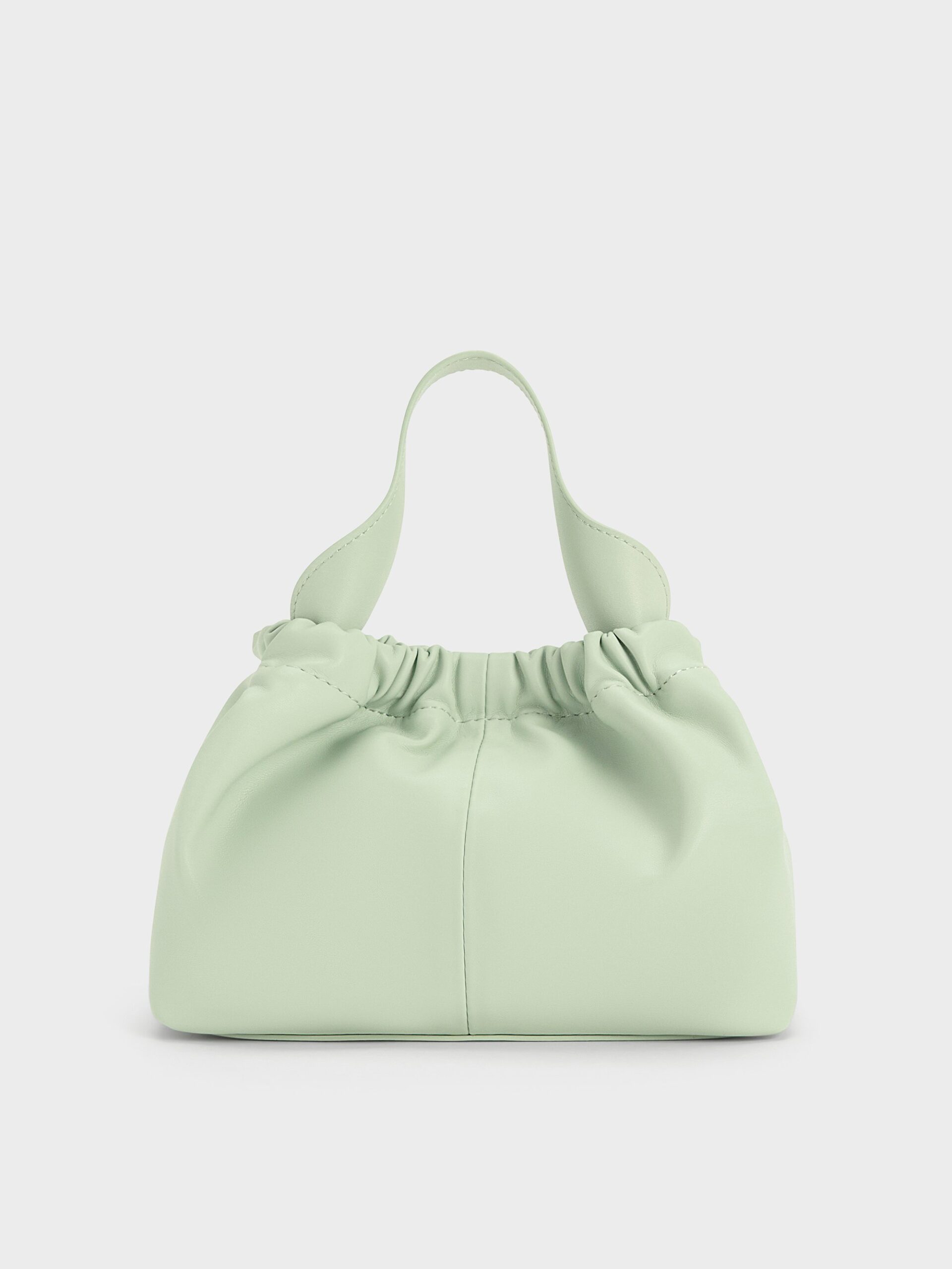 This Ally slouchy chain-handle bag in mint green features a ruched design, a magnetic closure, and not one but two detachable straps. Use it to bring soft tactility and a fresh pop of colour to your everyday wardrobe.