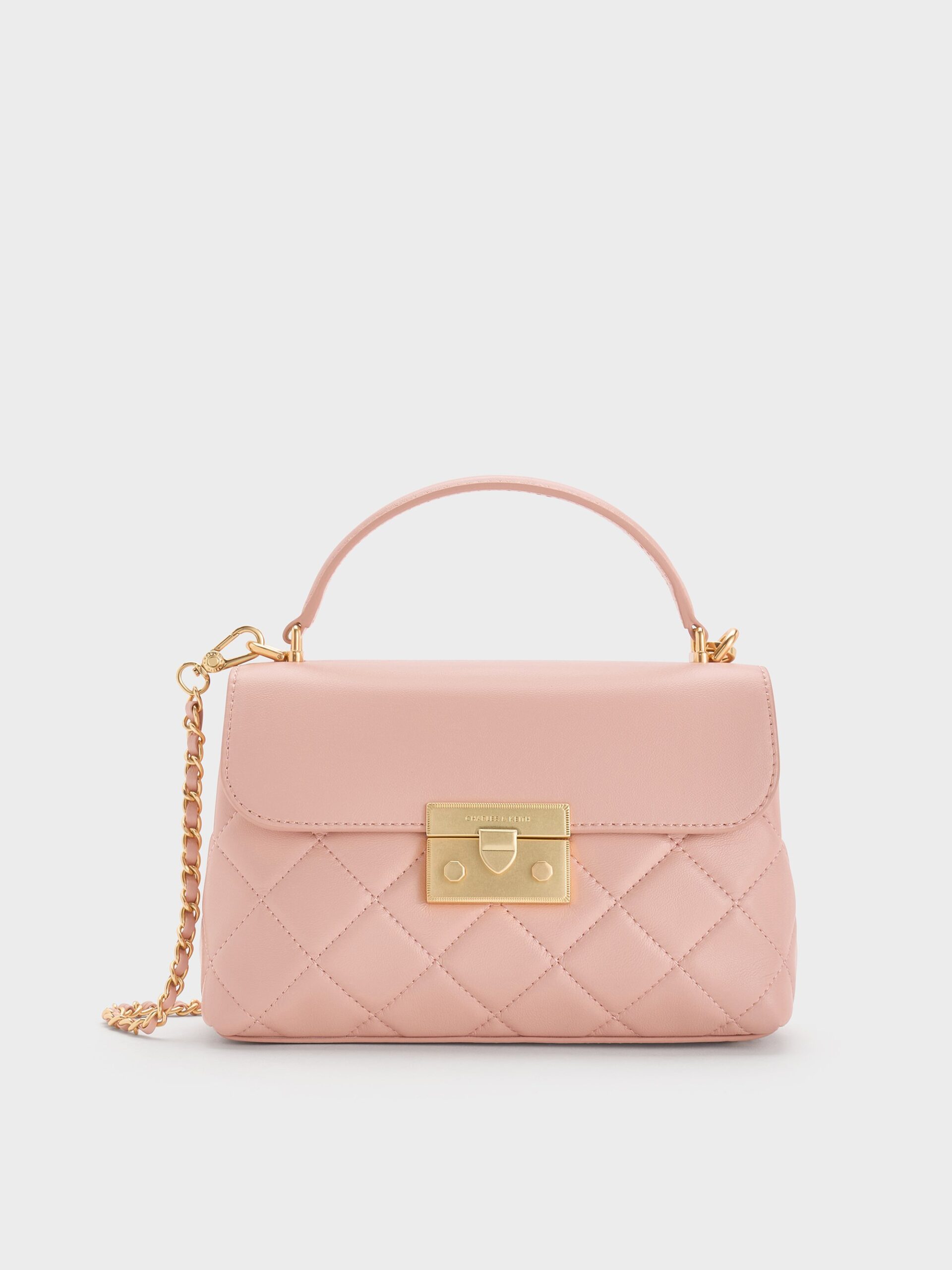 This Alva top handle bag in light pink will take you from day to night in effortless elegance. It is roomy enough to hold all your essentials and more. Stylish and versatile, this bag can be carried in two ways: via the top handle or with the longer chain strap.