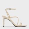 These Andricia sandals in chalk feature a patent finish, asymmetrical strappy uppers, slender ankle straps, sharp stiletto heels, and elegant almond toes. Wear them with desk-to-dinner edits to look refined and put-together through the day.